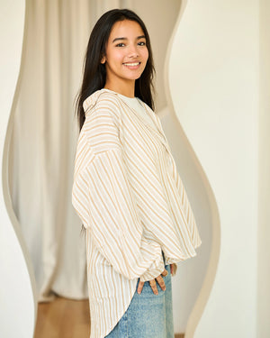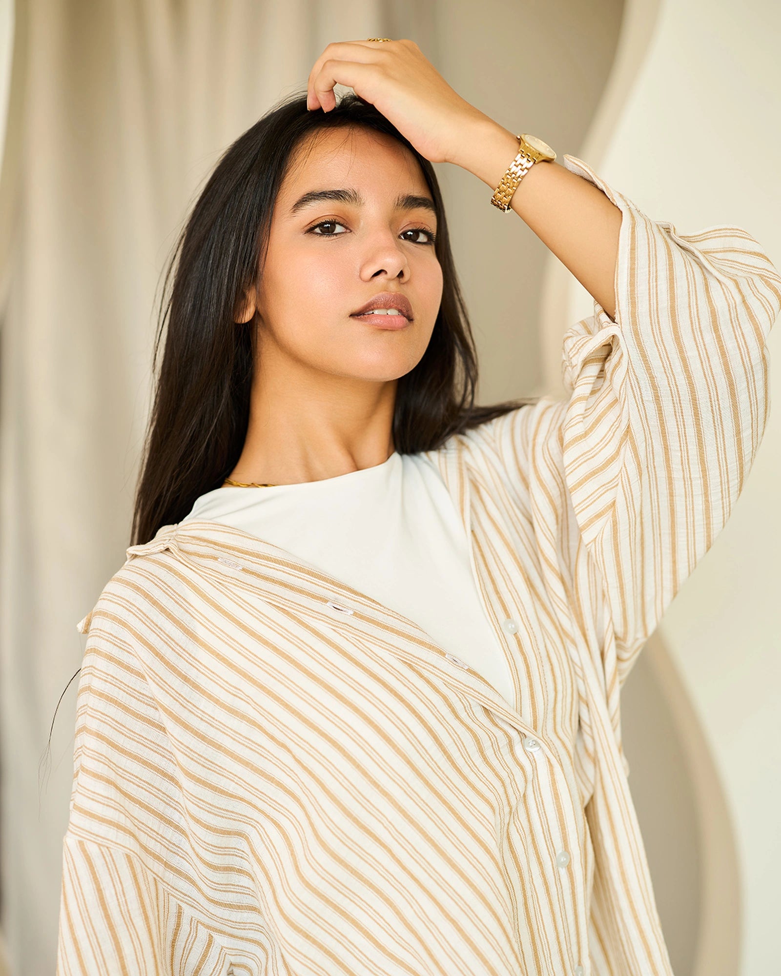 Effortless, relaxed, and endlessly versatile – our Oversized Striped Shirt is your go-to layering piece for every season.