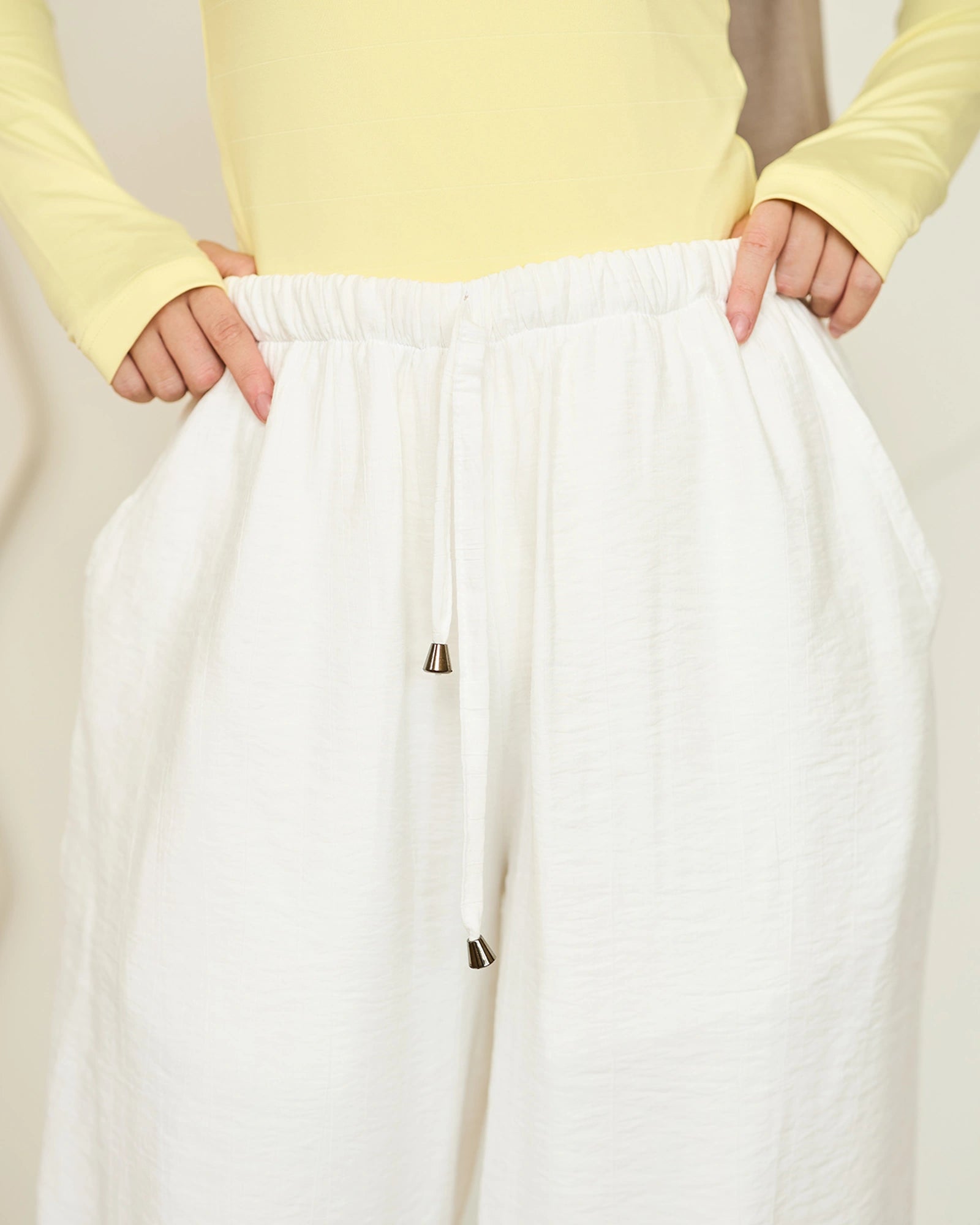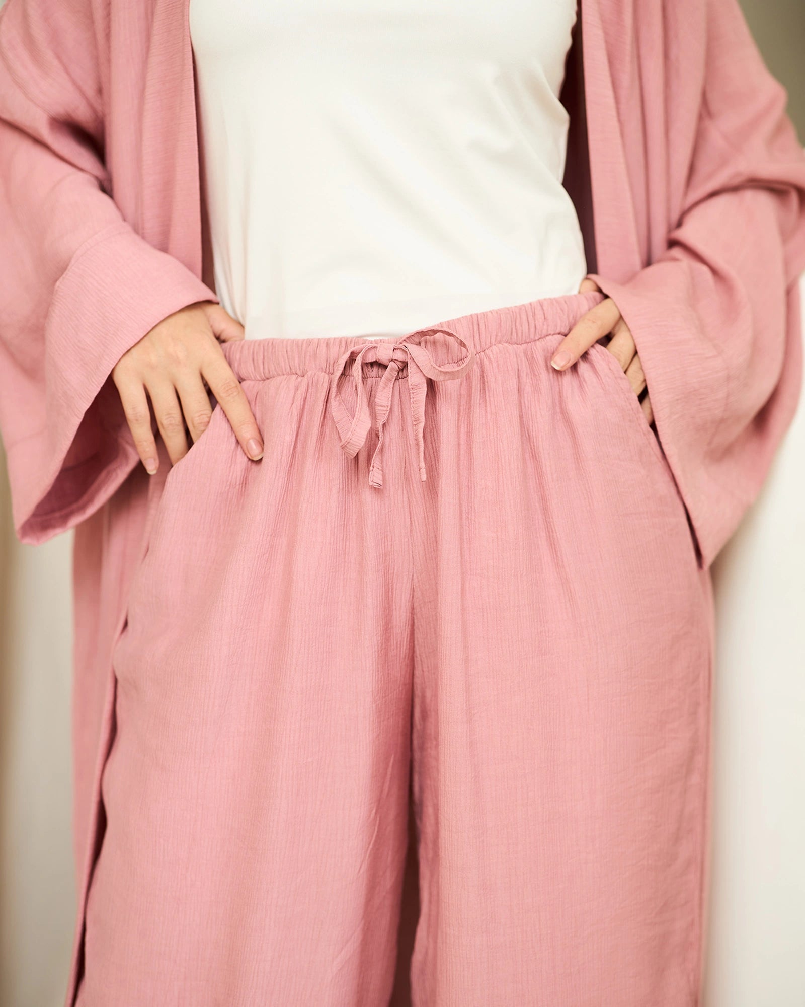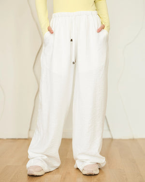 Crafted from our signature Rosaline fabric, these pants drape beautifully with a soft, flowy feel that moves with you. The back features an elastic panel for an adjustable fit at the waist, ensuring comfort all day long without compromising on style.