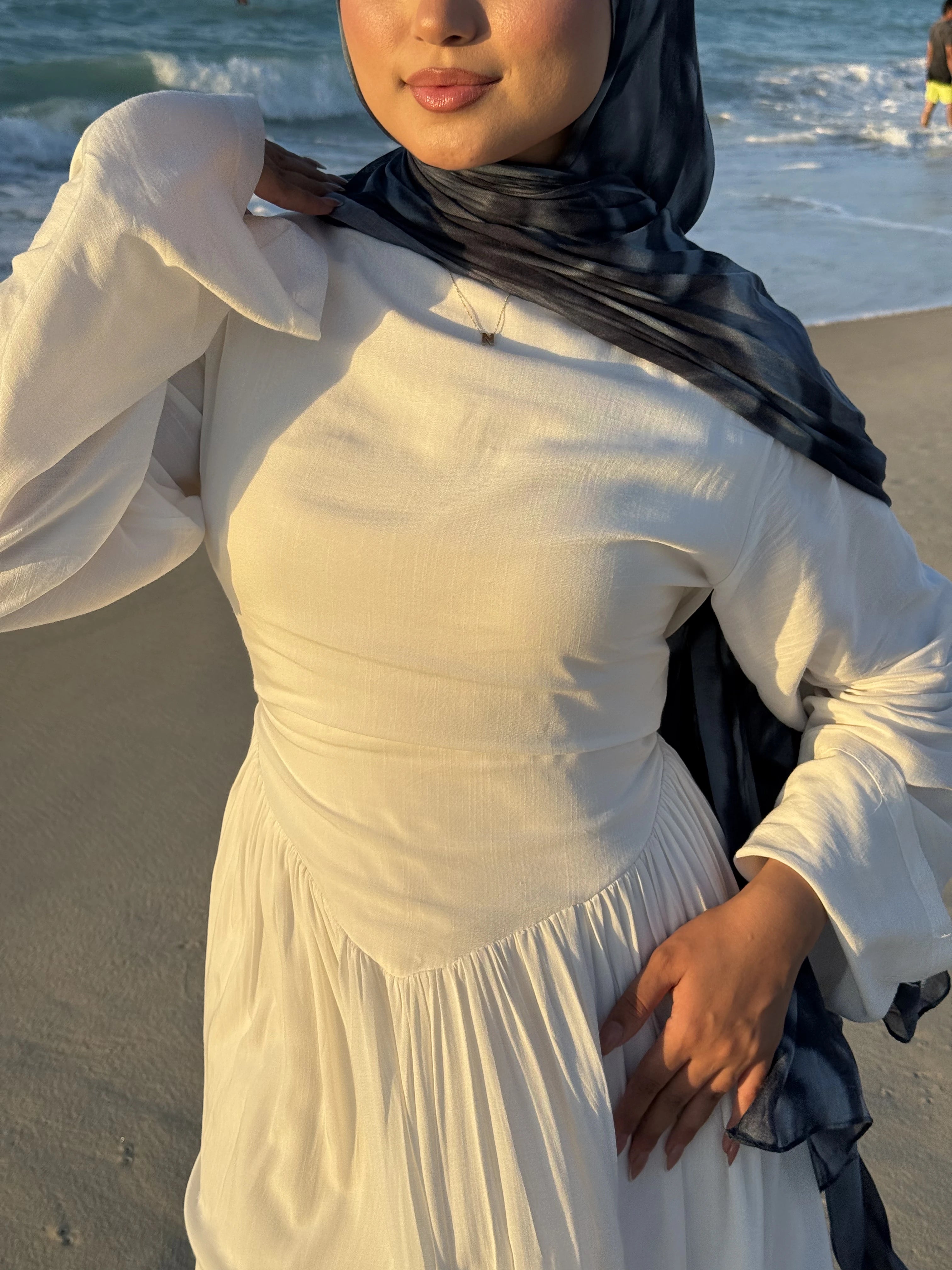 Elevate your summer style with this timeless white linen dress. Designed with a flattering back-tie belt, it beautifully cinches the waist for a snatched and feminine silhouette. Crafted from breathable linen, it’s the perfect blend of chic and comfort, making it ideal for both casual days and evening outings. Available in 2 versatile sizes to suit your fit. 🤍🌿